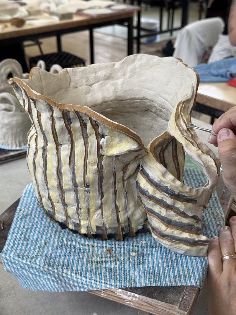 You will also explore creative ways to enhance your pieces: by using clay additives such as stains and organic materials, as well as decorative techniques (including carving, incising, slip decoration, and additive forms).