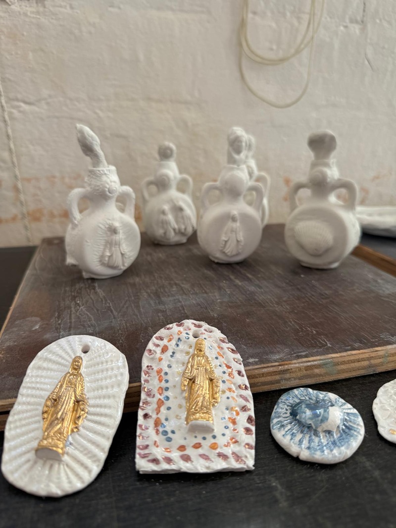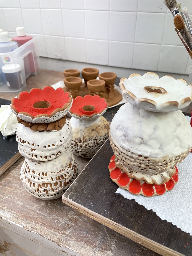Ebony Russell is an Australian artist who uses an unorthodox approach to construct ceramic sculptures. Her unique technique was developed out of an interest in gendered aesthetics, labour and traditional craft practices where Russell methodically pipes porcelain in a series of intricate layers to build gravity-defying forms. Challenging the traditional making processes of decorative vessels; in her works the decoration becomes the structure, and the boundaries between the two are erased. Exploring established perceptions of cultural and artistic practices that were once exclusively coded as feminine and thus insignificant, Russell’s work celebrates the decorative, promiscuous aesthetics and politics of purity; the superficial, excess and delight – with pleasure. Ebony Russell completed a Bachelor of Applied Arts (Honours) at Monash University in 2003 and in 2019 graduated from The National Art School, Sydney with a Masters of Fine Art. Russell has won a number of international awards and her world has been exhibited and collected worldwide.